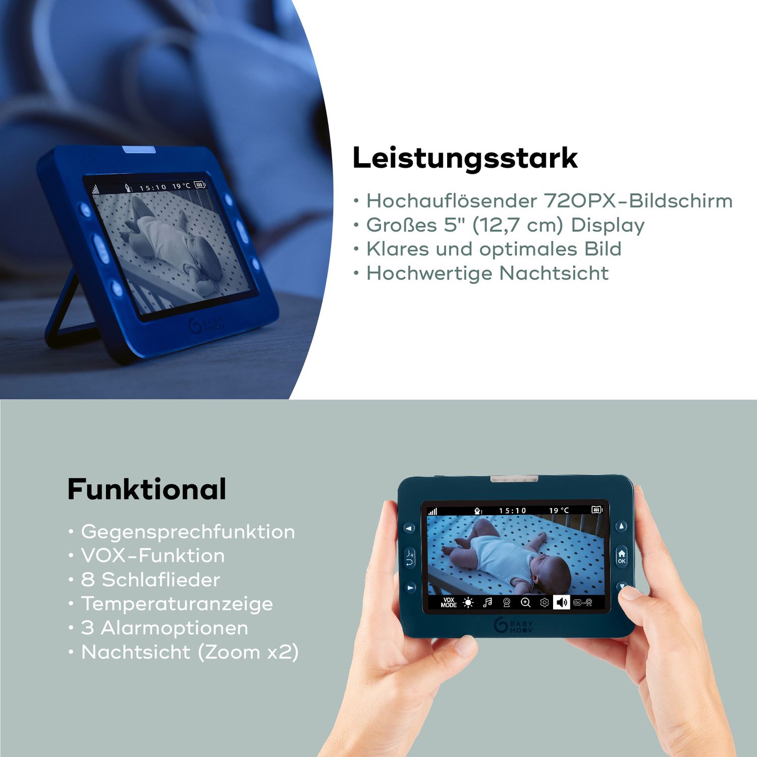 - Funktionen: VOX-Modus, Sleep-Technologie, Zwei-Wege-Kommunikation, Raumtemperatur-Anzeige, Erweiterbarkeit auf bis zu 4 Kameras