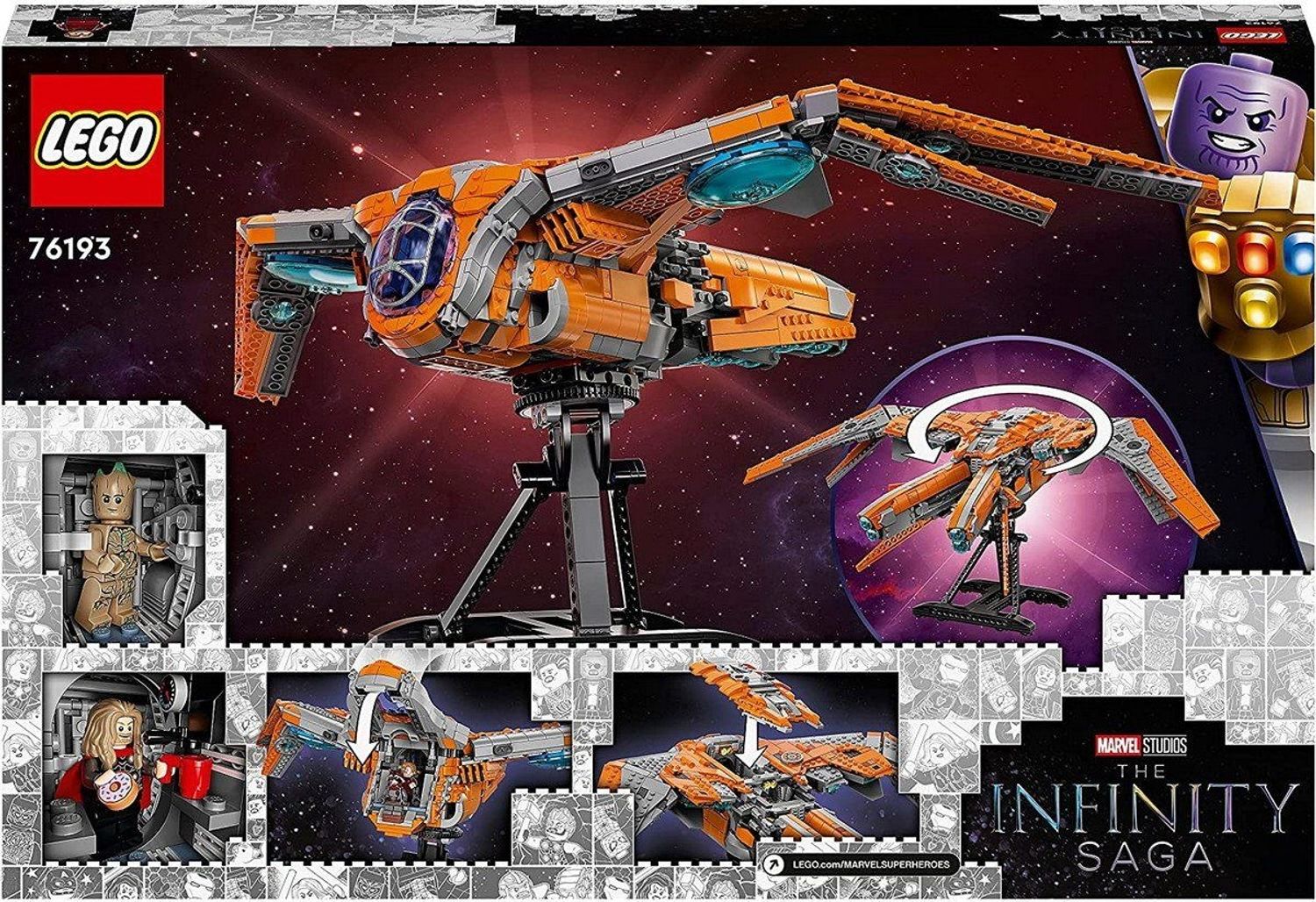Im Set sind 6 Minifiguren enthalten: Star-Lord, Groot, Rocket, Mantis, Thor und ein Chitauri-Soldat. Das Aufklappbare Cockpit sowie die zusätzlichen Elemente wie die Ausrüstungskammer und die Imbissecke machen das Abenteuer noch aufregender. Das Schiff kann auf einem robusten Drehständer präsentiert werden, sodass es sowohl als Spielzeug als auch als Ausstellungsstück genutzt werden kann.