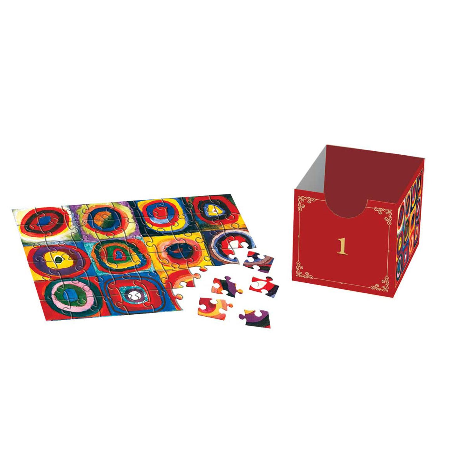• 24 tägliche Mini-Puzzles – Jeden Tag öffnet sich ein neues Fach mit einem 50-Teil-Puzzle und einem bekannten Kunstmotiv.